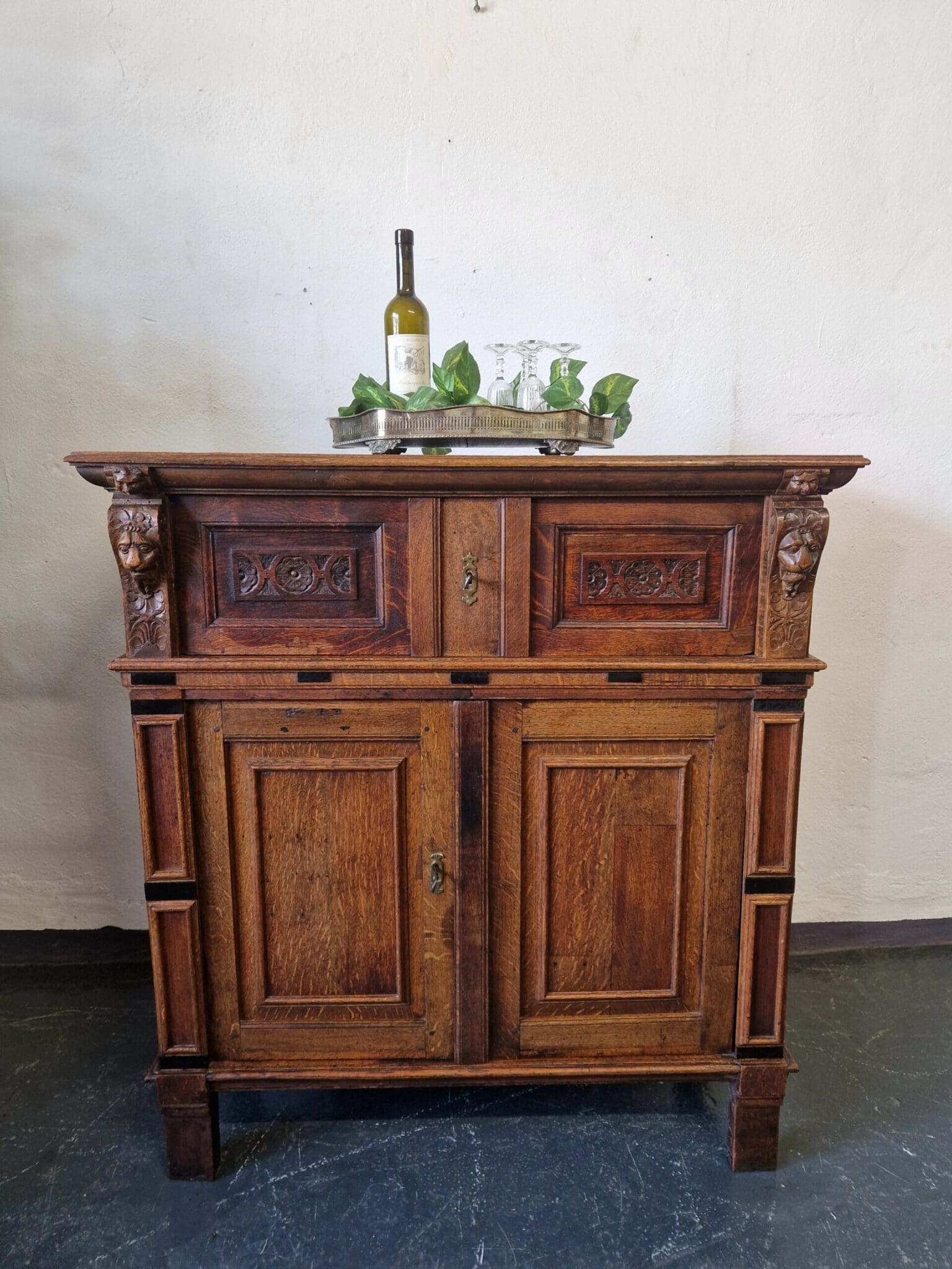 Anrichte Hochschrank Gründerzeit antik Löwenköpfe um 1870Verfügbarkeit: Vorrätig