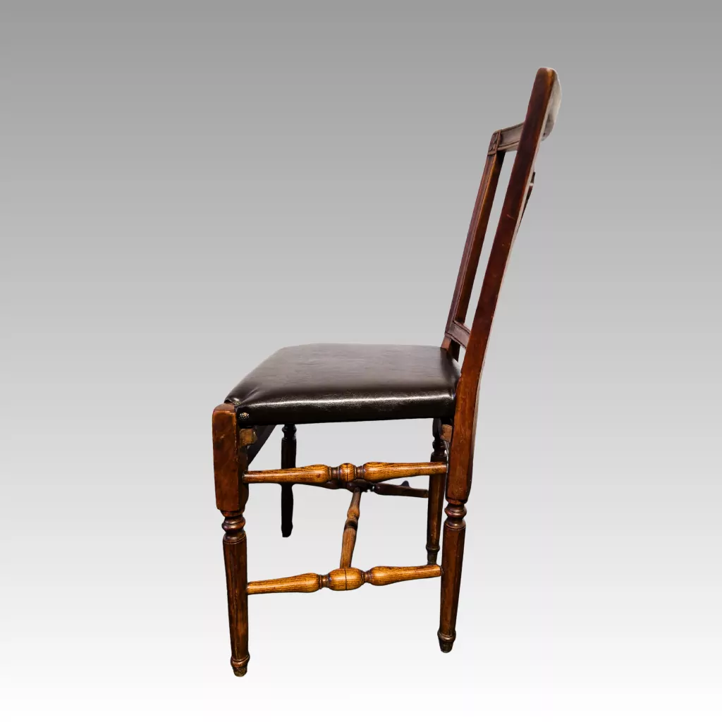 Ein besonderer Vorteil dieses 6er Sets antiker Stühle ist der sehr gute Zustand. Die Stühle wurden neu gepolstert und mit einem hochwertigen Leder bezogen. Dadurch sind sie sofort wohnfertig und sowohl für den täglichen Gebrauch als auch für repräsentative Zwecke geeignet.