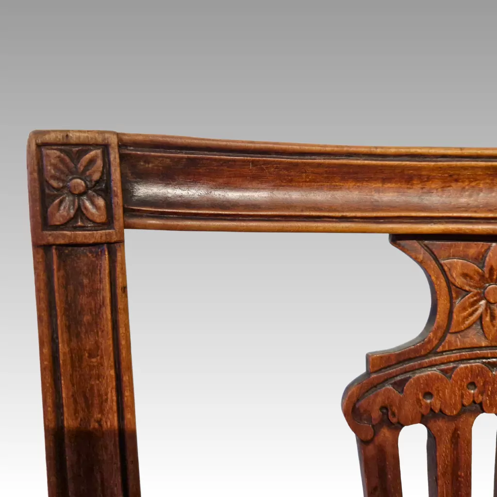 Die Stühle wirken ruhig, ausgewogen und dennoch dekorativ. Durch ihre geradlinige Konstruktion und die feinen floralen Schnitzereien fügen sie sich sowohl in klassische als auch in stilvoll kombinierte moderne Interieurs ein. Als antikes 6er Set Stühle eignet sich dieses Ensemble ideal für Esszimmer, Altbauwohnungen oder repräsentative Räume mit historischem Bezug.