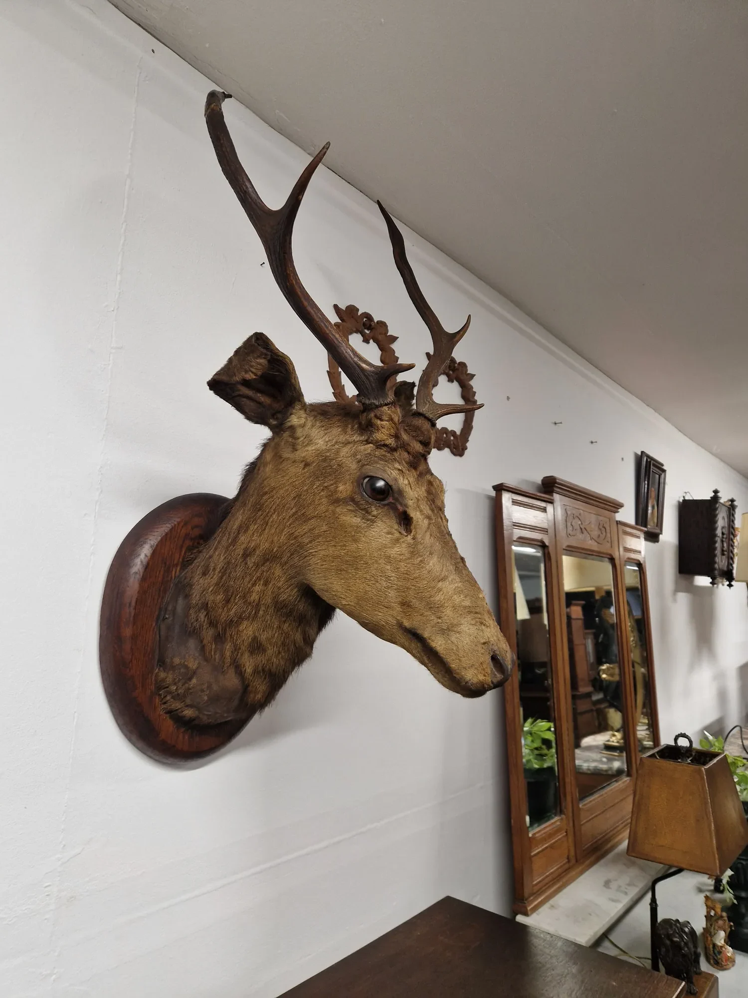 Startseite » Onlineshop » Hochwertiger präparierter Hirschkopf antik 1910