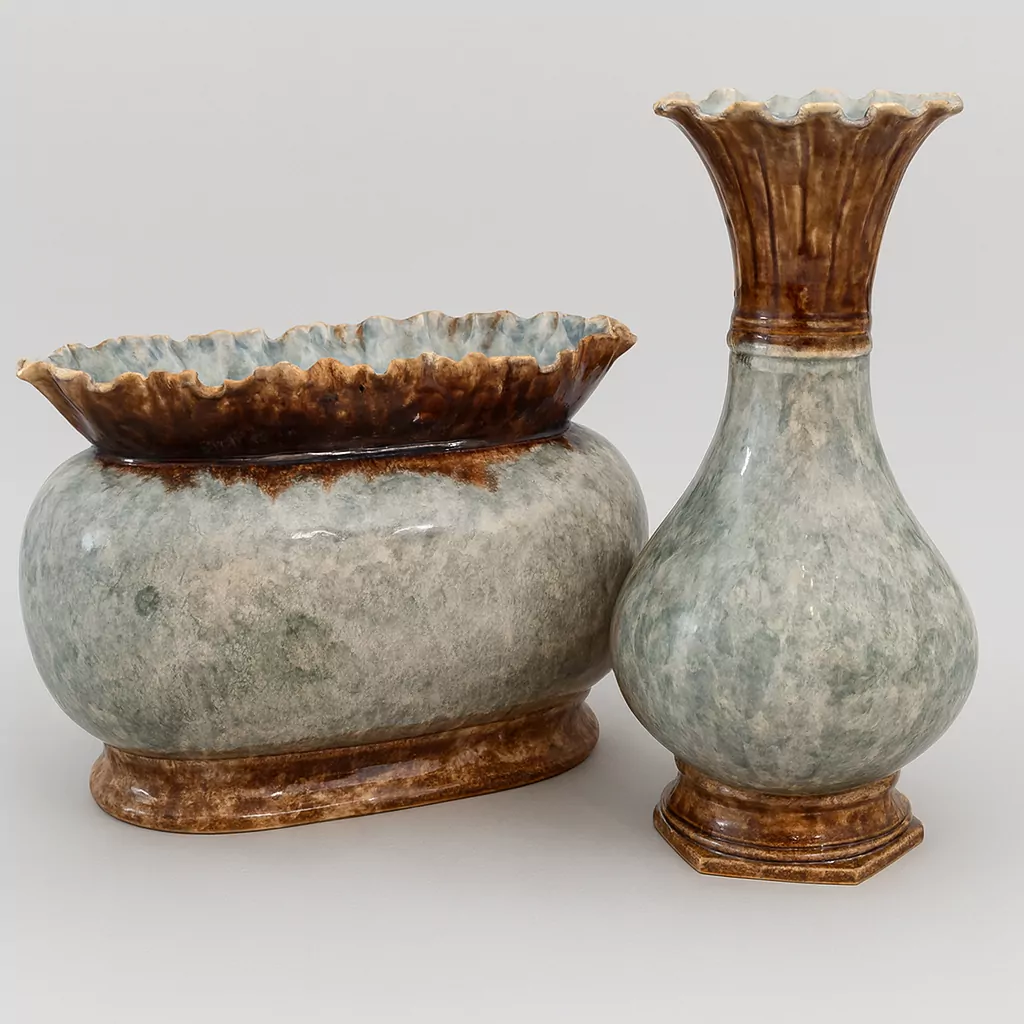 Auch als Sammlerstücke besitzen die Jugendstil Vase und Schale eine besondere Bedeutung. Die edle Ausführung, die reliefartige Floristik und die typisch kunstvolle Glasur zeugen von einer Zeit, in der Keramikobjekte sowohl Gebrauchs- als auch dekorative Kunstwerke waren. Für Sammler, Kunstliebhaber oder Kenner der Epoche stellt dieses Ensemble ein wertvolles Beispiel traditioneller Keramikdarstellung dar.
