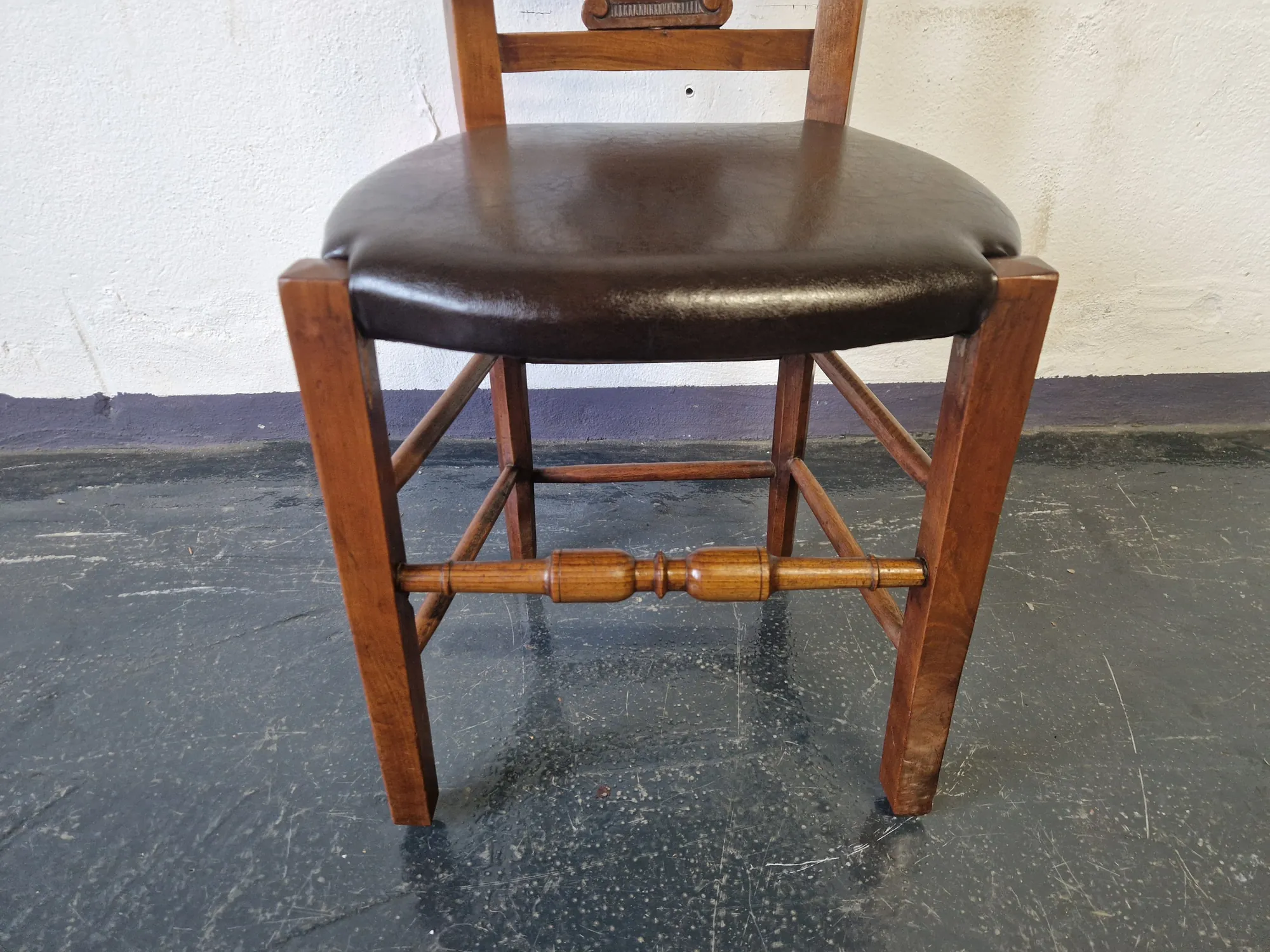 Der antike Biedermeier Stuhl – Bürostuhl wurde hochwertig neu gepolstert und mit Leder bezogen. Die stabile Konstruktion aus Massivholz garantiert Langlebigkeit und besten Sitzkomfort. Der Stuhl ist nicht zerlegbar und passt ideal zu Schreibtischen, Sekretären oder als elegantes Einzelstück in einem stilvollen Ambiente.
